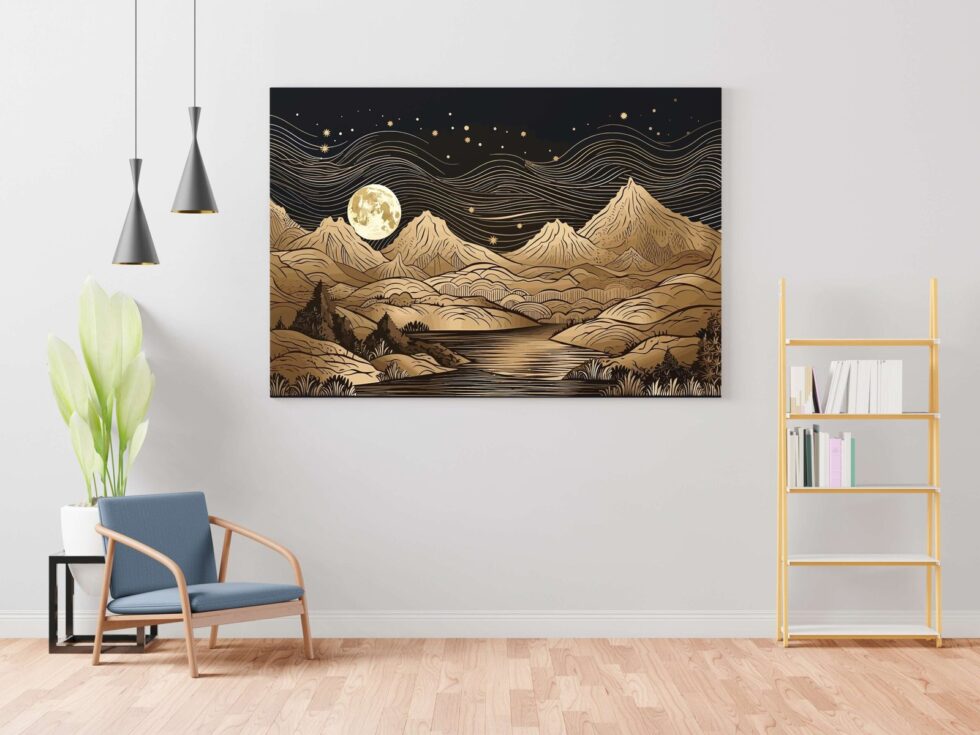 Timeless golden round frame artwork to bring warmth and sophistication to your office.