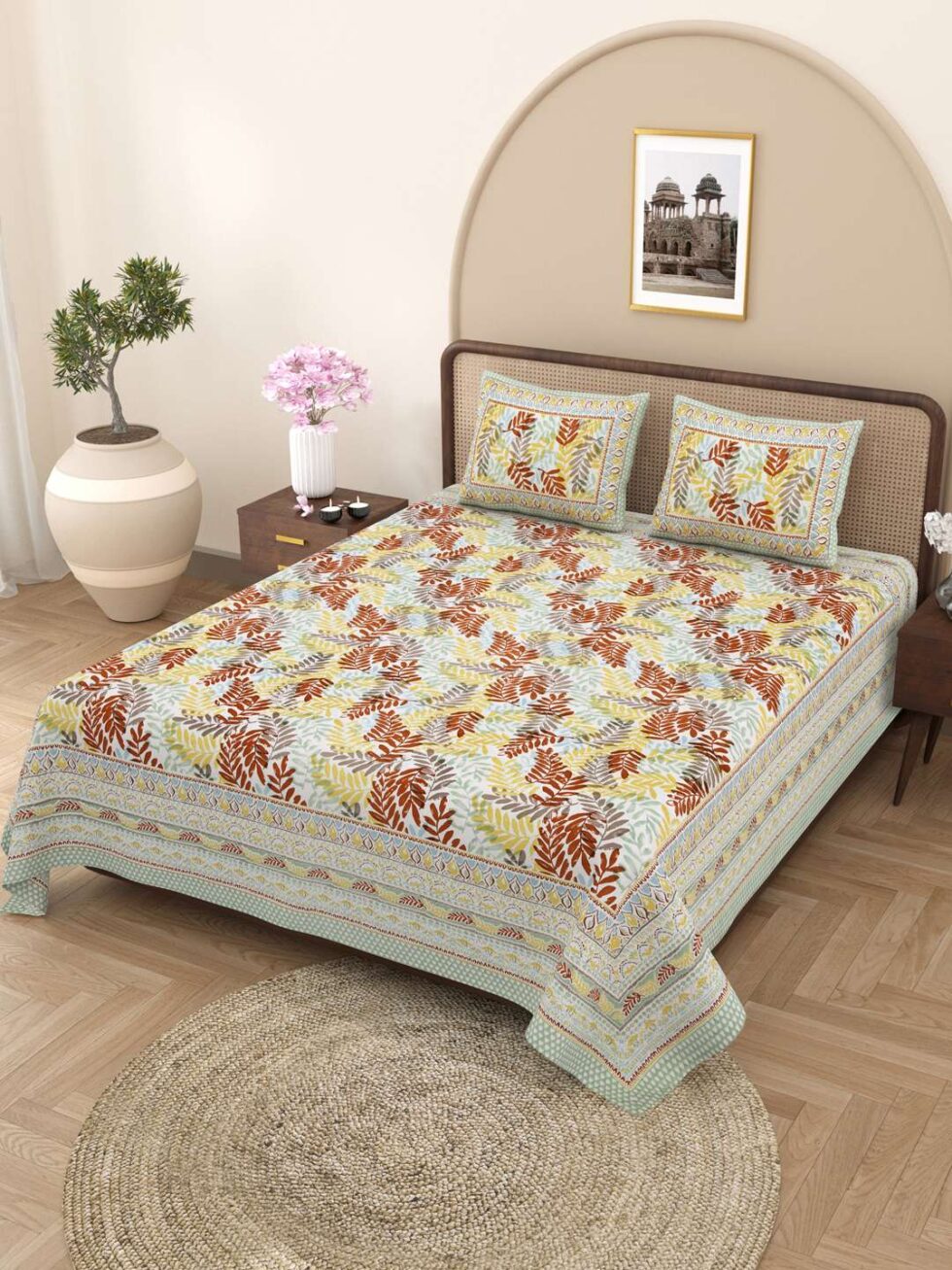100% Pure Cotton Traditional Printed Bedsheet for Double Bed King Size Bedsheet with 2 Pillow Covers