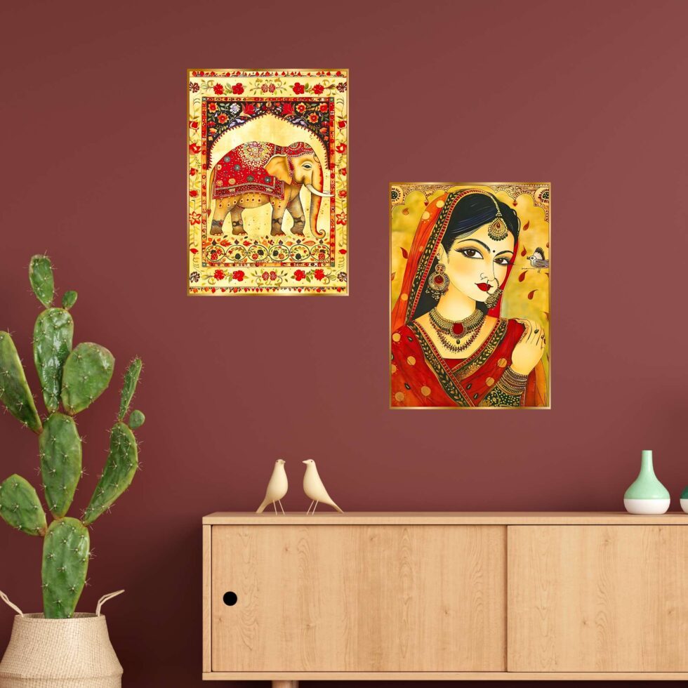 wall paintings, designed to elevate any room with their vibrant traditional charm. Perfect for a variety of settings, these intricate pieces are ideal for wall decor, whether you’re seeking artwork for your living room or bedroom. Our collection includes bold and large wall paintings that create a striking focal point, especially as big wall paintings for the living room. paintings are perfect for home decoration, seamlessly fitting into any space as wall art for living rooms or framed wall paintings for bedrooms. Whether you choose wall paintings with frames for the living room or bedroom, these pieces add an elegant, cohesive touch to your decor. Beyond living areas, these paintings also make beautiful kitchen wall decor and versatile wall hanging options. Enhance your living room wall decor with framed wall art that complements any style. Choose from various formats, including wall paintings golden frame,allowing you to customize your space with ease. Each painting blends traditional and abstract styles, offering both framed wall paintings and wall art decor that fit effortlessly into any room. Explore the beauty of art and bring a touch of culture and sophistication to your home with these exquisite wall paintings for decoration.